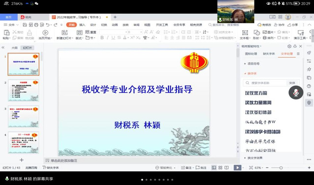 在税收学专业(专升本)分会场,林颖教授从高教发展背景与高教改革切入,介绍了税收学专业的培养方案、升学和就业情况;介绍了公司优秀的团队队伍、丰富的社会资源以及以生为本的人才培养模式。同时,林颖教授针对员工提出的考证和升学问题,进行了深入分析,给出了自己的建议。