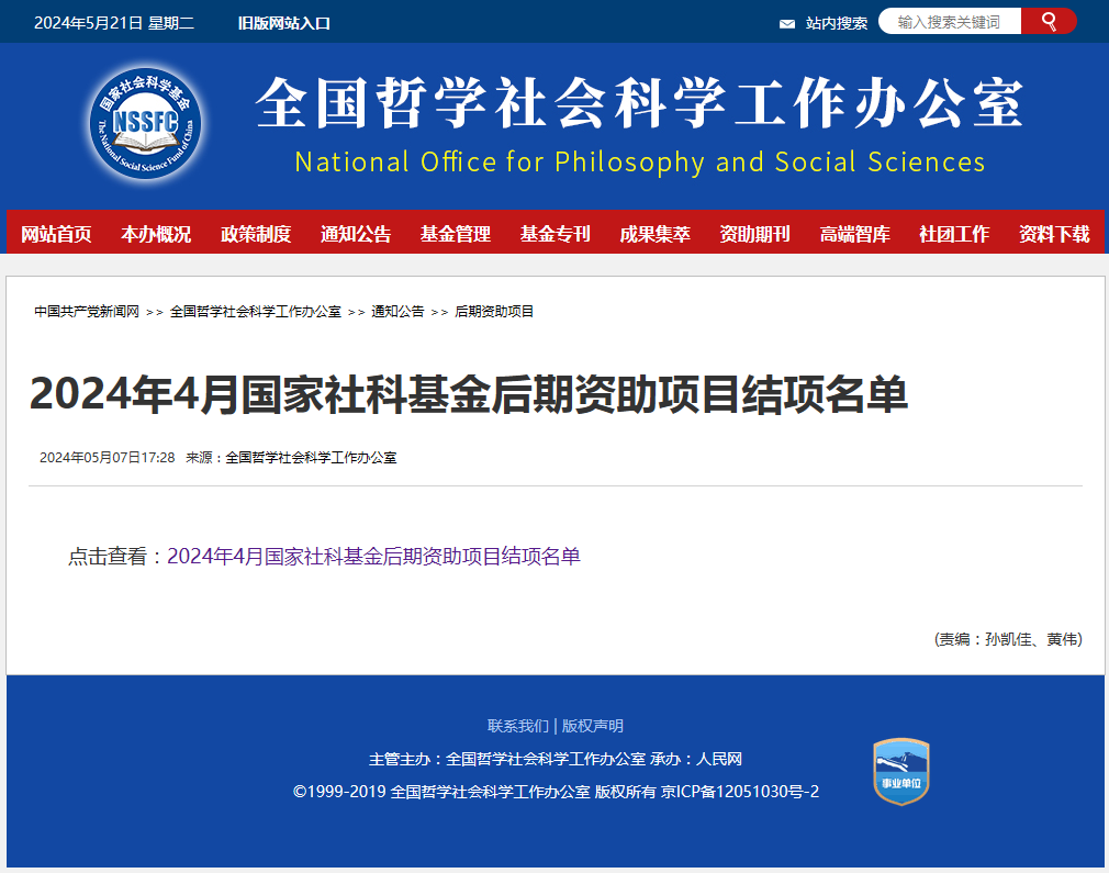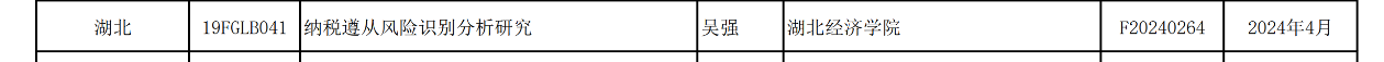 20240507日下午,全国哲学社会科学工作办公室公布了20244月国家社科基金后期资助项目结项名单,公司吴强老师2019年获得立项的国家社科基金后期资助项目 纳税遵从风险识别分析研究(项目批准号:19FGLB041)顺利通过结项验收,结项证书号为F20240264