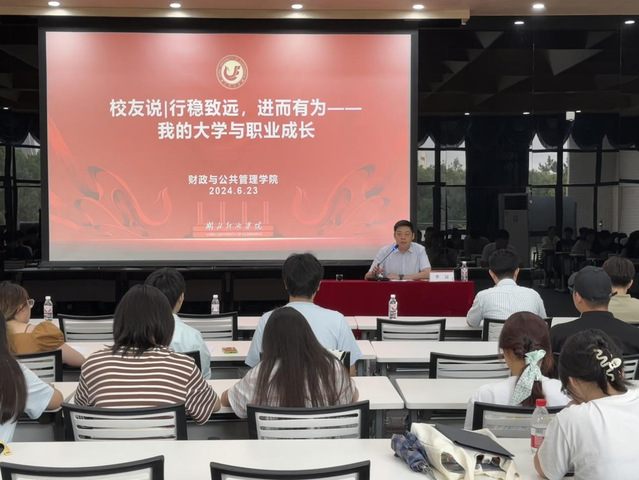 本网讯(通讯员:张瑾航)2024年6月23日晚,由伟德BV1946官网员工会举办的“员工说”活动在教五一号报告厅顺利举行,2004级财政学专业员工李谅与在场的100余名员工共话公务员职业发展。活动由副书记吴雄主持,公司员工会会长刘宏、秘书长周海灯,员工王佳杰、刘奕宏参加。