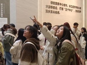 随后,大家来到了武汉规划展示馆。城市历史展区的盘龙城复原模型和“会动”的江汉揽胜图,生动再现了武汉在历史上的繁荣景象。师生们无不被这些栩栩如生的展品所吸引,纷纷拍照留念,现场气氛热烈。