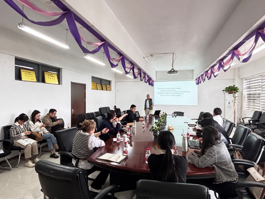 随后,周万里、余白雪、杨芳、林诗贤等教师分别分享了各自的研究计划,涵盖财政政策、税收制度优化、流域综合治理等多个领域。汉密尔顿教授认真听取了报告,并结合自身研究经验,对每位老师提出了建设性意见,进一步深化了学术交流的深度与广度。此次会议为公司青年教师提供了宝贵的学术交流平台,促进了国际视野与本土研究的有机结合。