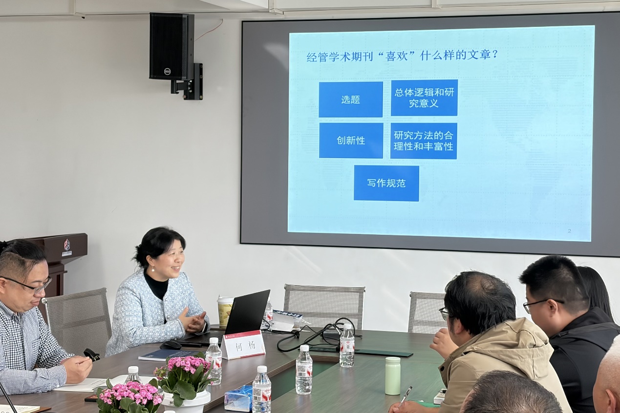 何杨教授现任中央财经大学学术期刊社社长,在学术出版与科研评价领域具有深厚积累。讲座中,她系统阐述了高质量学术研究所需的“专”与“博”双重特质。她指出,“专”体现在研究问题的精准提炼、理论模型的严谨推导与研究范式的规范运用;而“博”则要求具备跨学科视野,能够融合经济学、管理学、社会学等多学科方法,并植根于中国经济发展的宏大背景进行思考。何教授还结合“刊网融合”等学术出版新趋势,分享了期刊生态的最新发展。