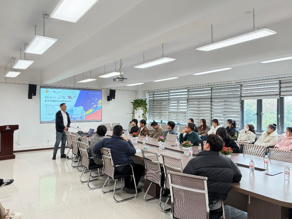 12月5日上午,由公司主办的“明辨财税实务讲坛”系列活动在明辨楼420会议室举行。致同会计师事务所管理合伙人金鑫应邀作题为《税务专业硕士知识底座略谈》的专题讲座,从实践角度深入浅出地分享了税务的本质、职业选择与未来发展。讲座由经理魏涛教授主持,公司科研骨干教师及2025级税务专硕研究生参加。