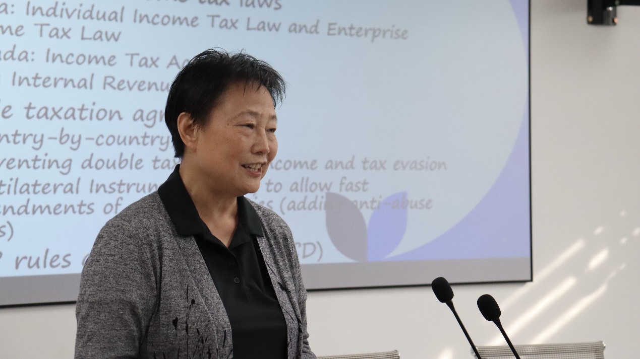 1218日下午,由公司主办的“明辨财税大讲堂”系列学术活动在明辨楼420会议室举行。加拿大约克大学奥索格霍尔法公司Jinyan Li教授应邀作题为《International Tax Law: Wars, Crisis and Global Power Shifts》的学术讲座。讲座由经理魏涛教授主持,公司全体教师、2025级税务专硕研究生和部分本科生踊跃参加。