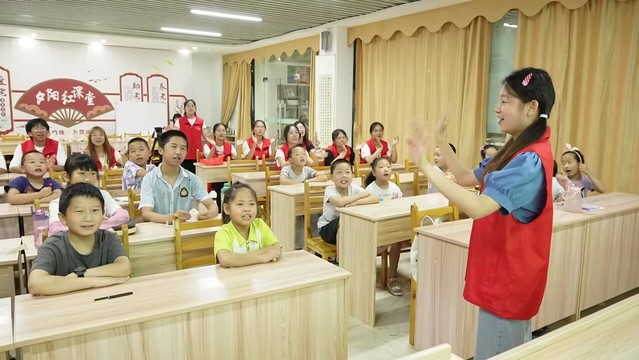 开展一次红色支教,学唱红色歌谣。7月8日,小分队前往城关镇北门岗社区儿童之家,开展红色支教活动。队员们带领小朋友们一起了解红安红色人物、学习红色故事、观看红色影片、学唱红色歌谣《红安谣》,加强小朋友们对红色文化的理解,引导他们树立中国特色社会主义共同理想,让红色基因代代相传。